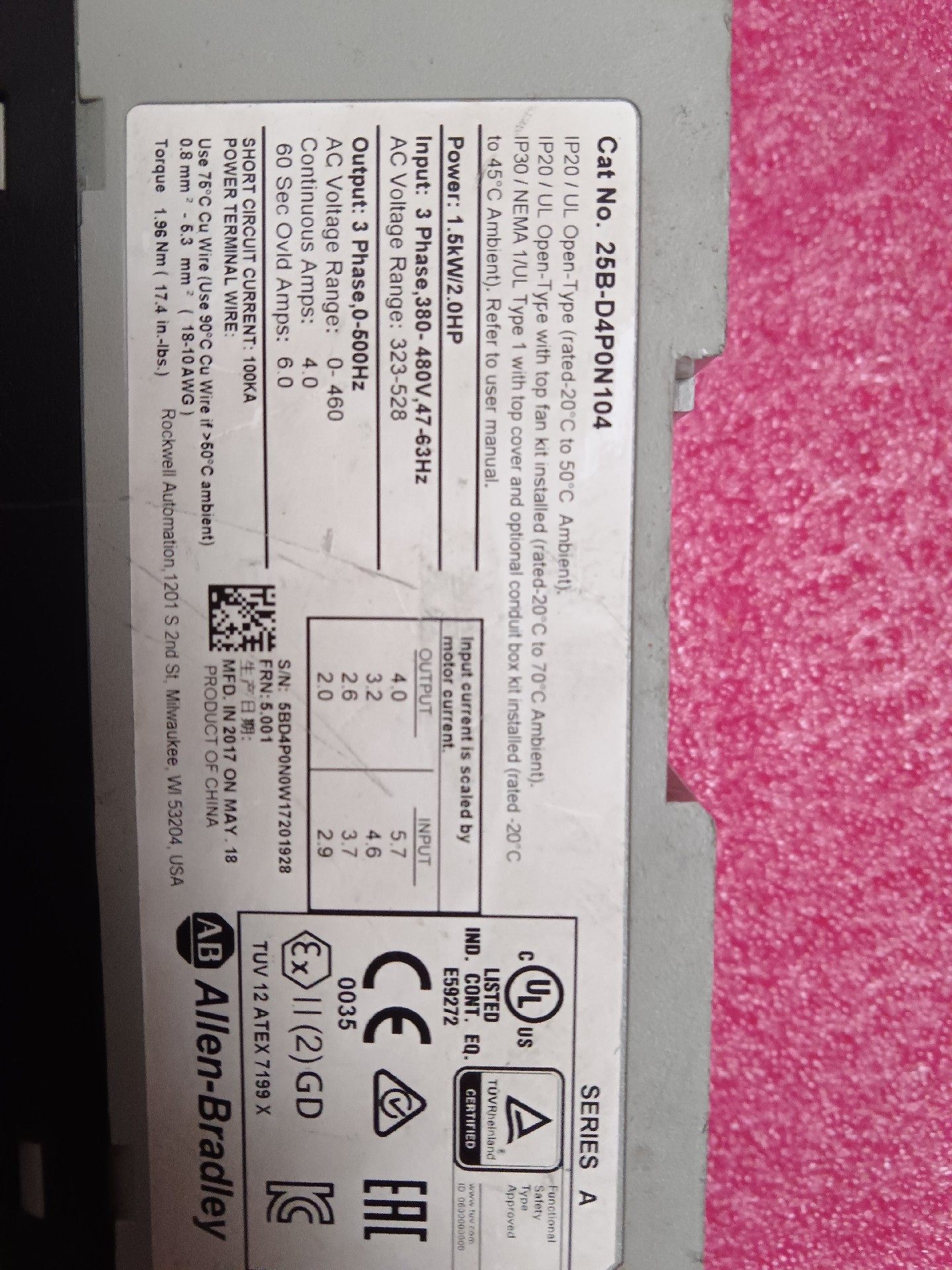 > AB罗克韦尔变频器25B-D4P0N104