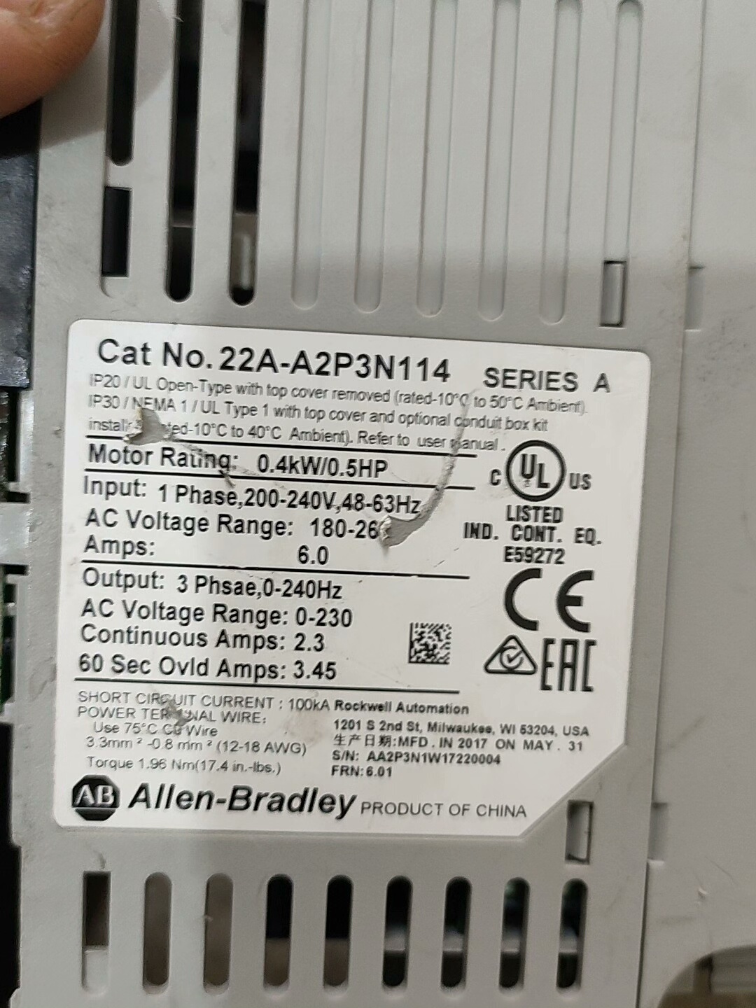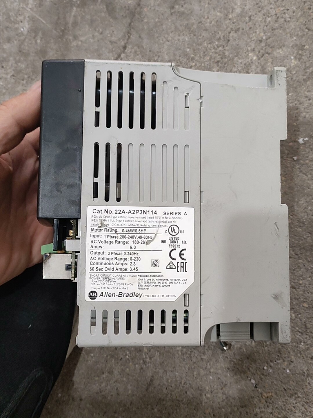 > AB变频器22A-A2P3N114 0.4KW 220V