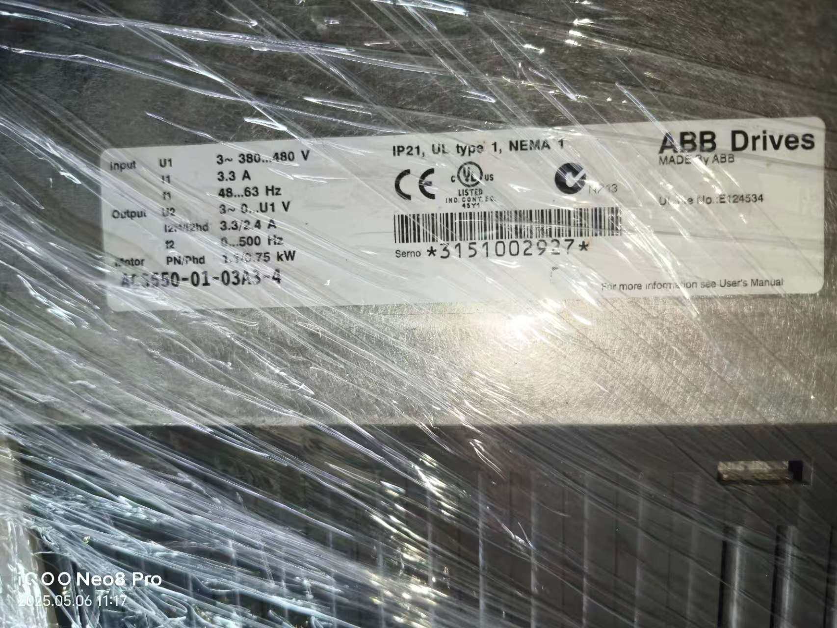 > ABB变频器ACS550-01-03A3-4,0.75kW,