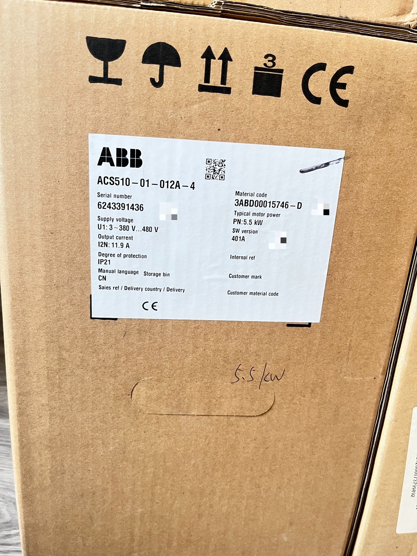 ABB变频器ACS510-01-012A-4,功率5.5KW