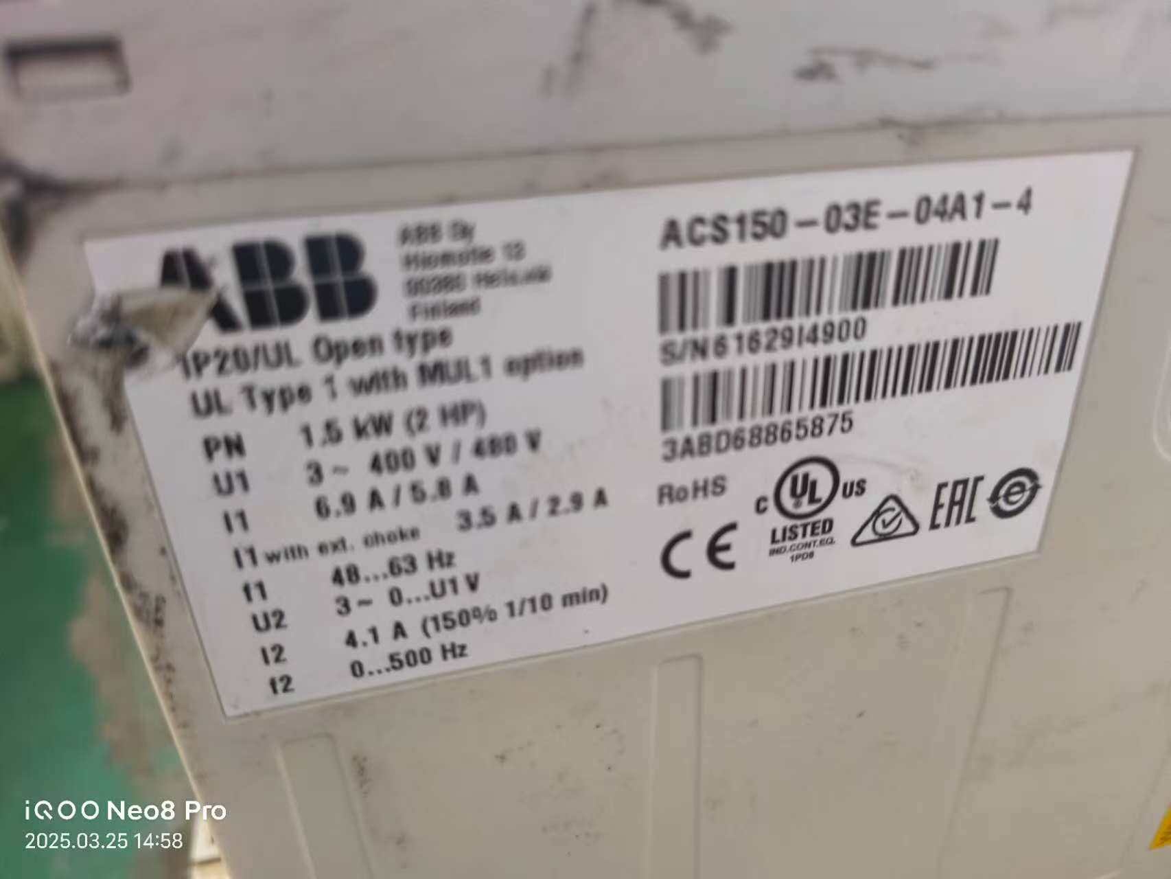 > ABB变频器ACS150-03E-04A1-4,1.5kW,