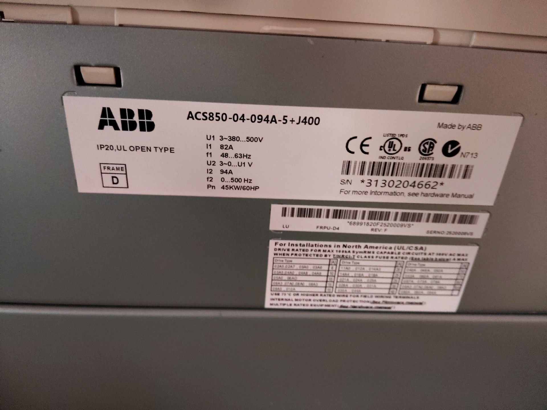 ABB变频器 ACS850-04-094A-5+J400,功