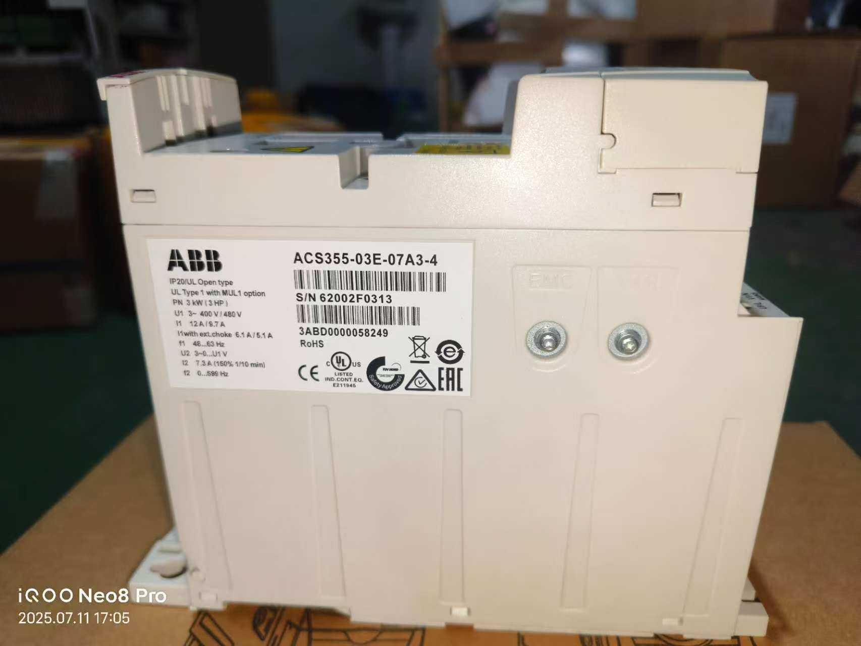 ABB变频器ACS355-03E-07A3-4,3KW功率,