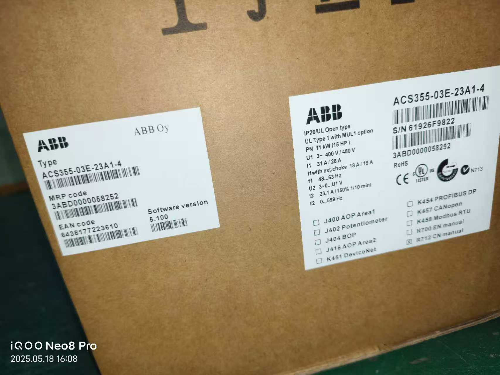 ABB变频器ACS355-03E-23A1-4,11kW,三