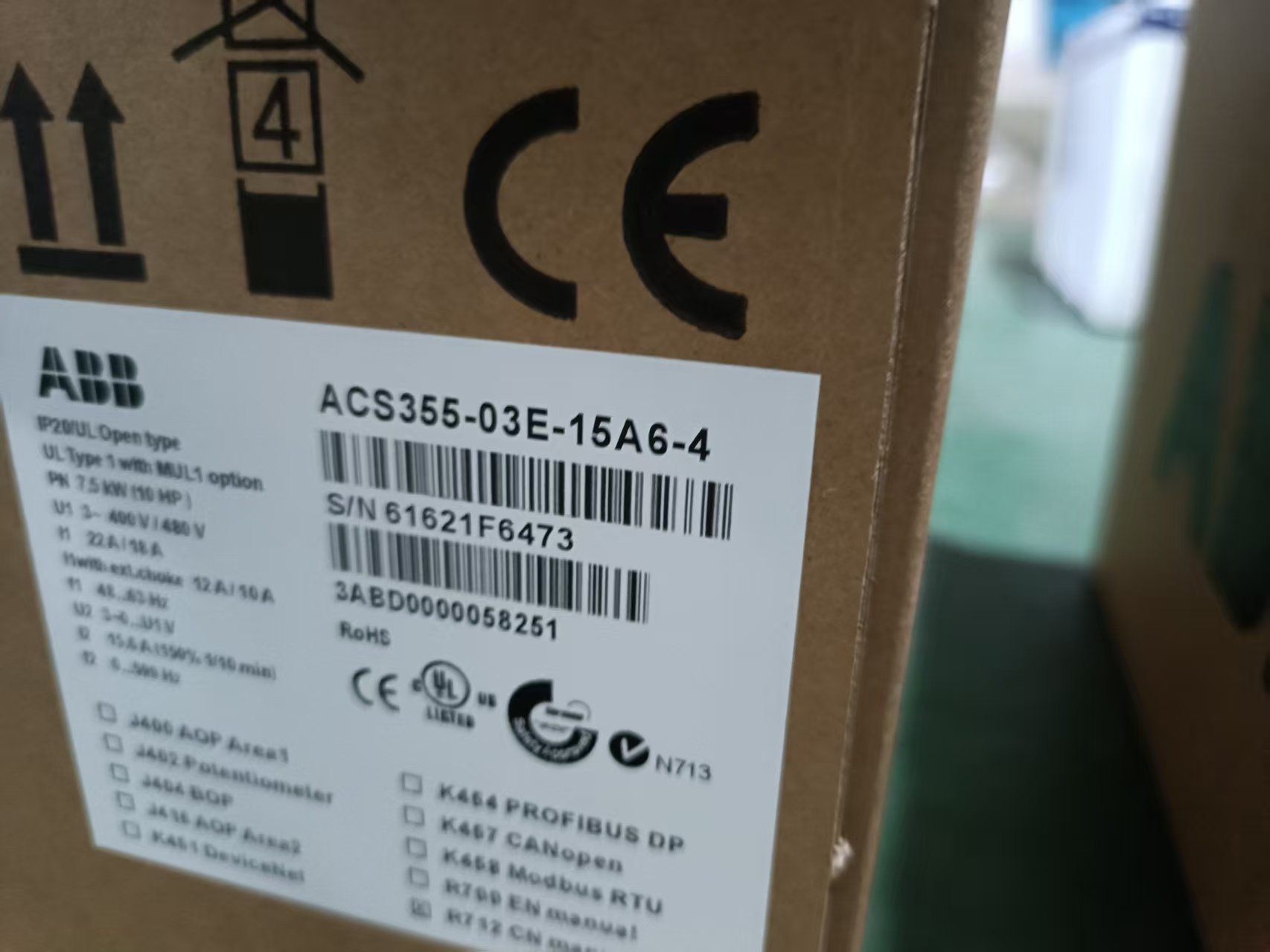 ABB变频器ACS355-03E-15A6-4,7.5KW功