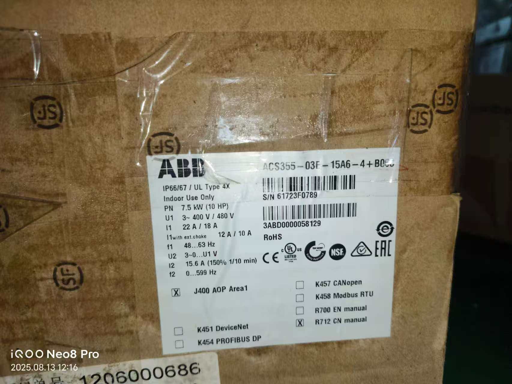 ABB变频器ACS880-01-032A-3,15KW,实物