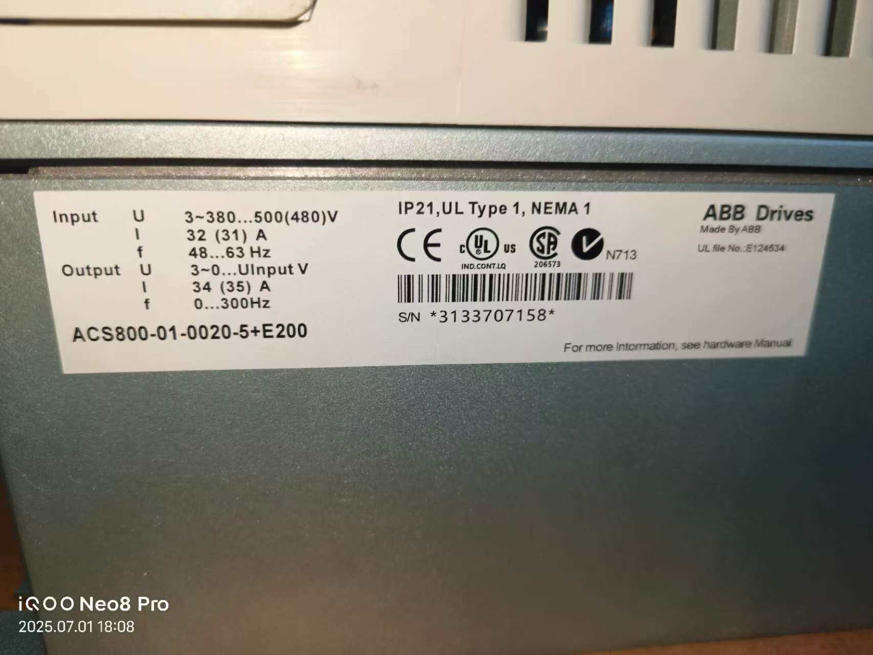 ABB变频器ACS800-01-0020-5+E200,5.