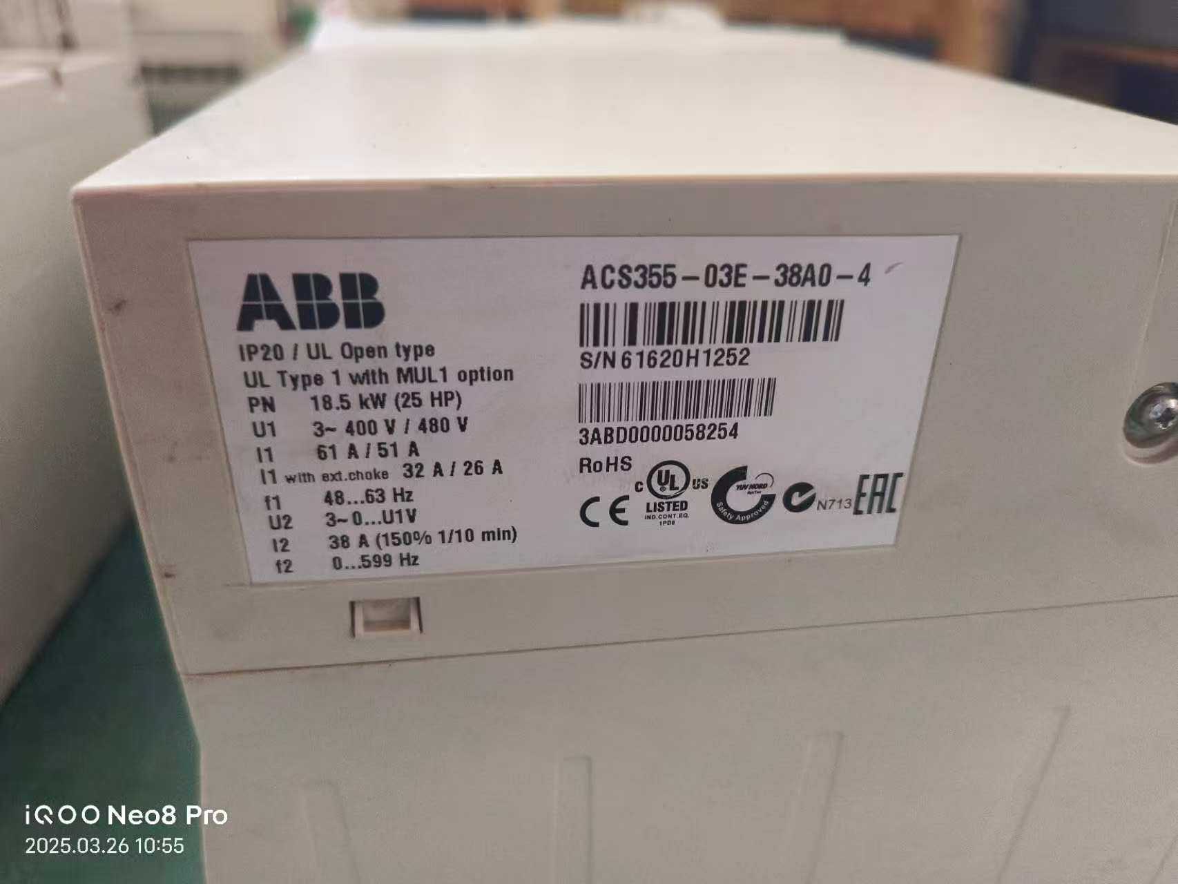ABB变频器ACS580-01-363A-4,拆机9成新,功
