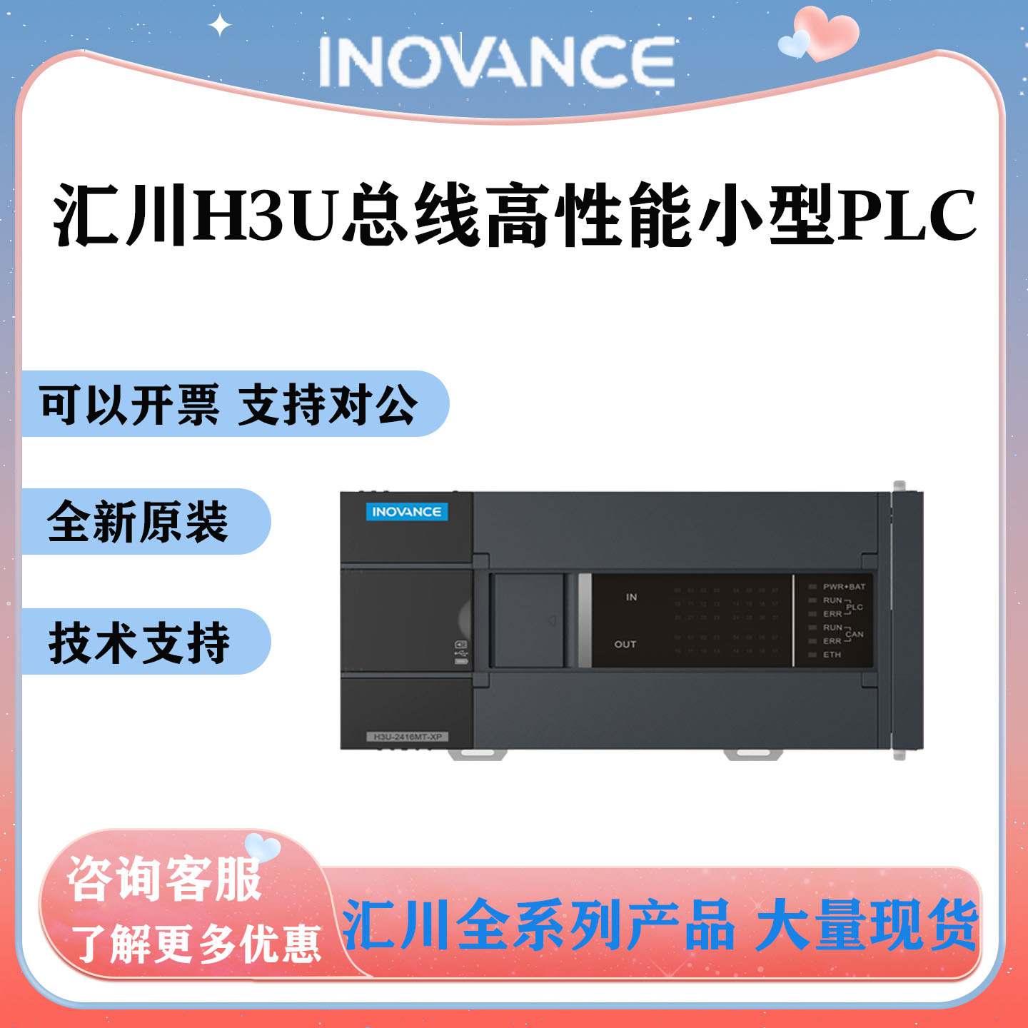汇川H3U系列PLC/H3U-1616MR/H3U-2416MR/H3U-323