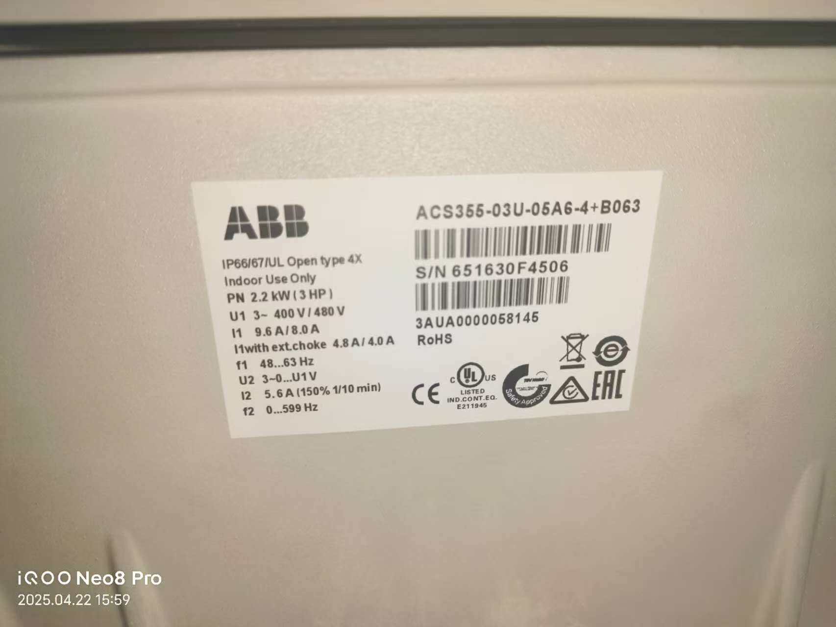 ABB变频器 ACS550-01-012A-4 实机图