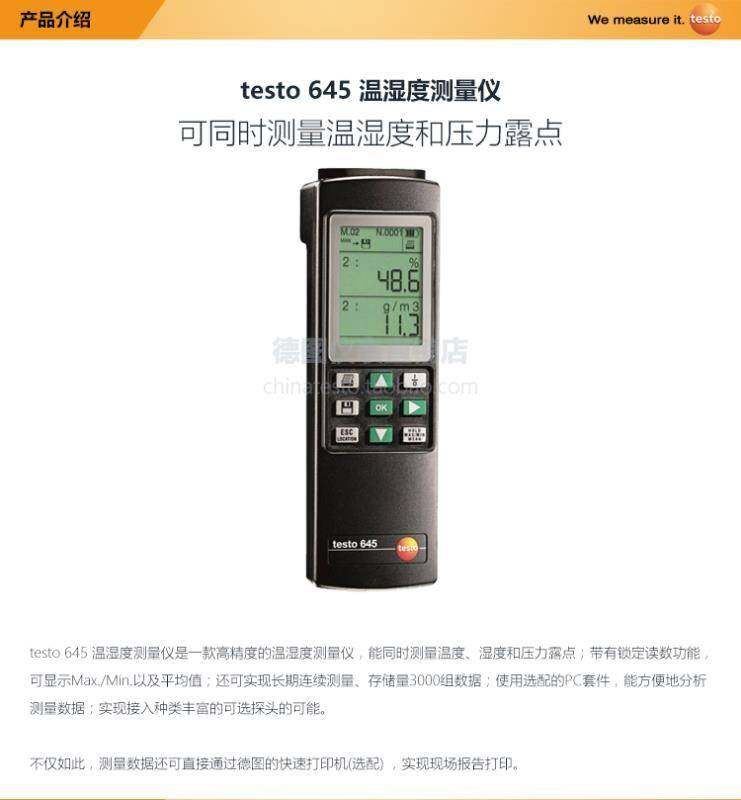 > 德图testo645高精度温湿度测量仪温湿度计手持式数字温湿 正品保