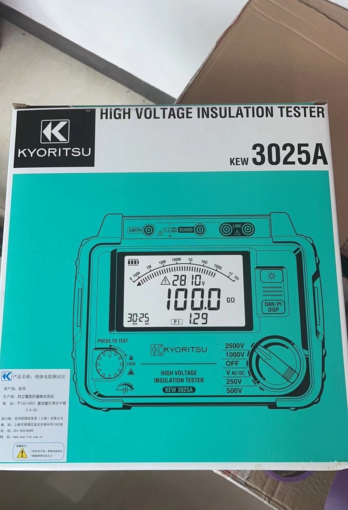 > 原装正品克列茨高压绝缘电阻测试仪KEW3025A兆欧表测试线