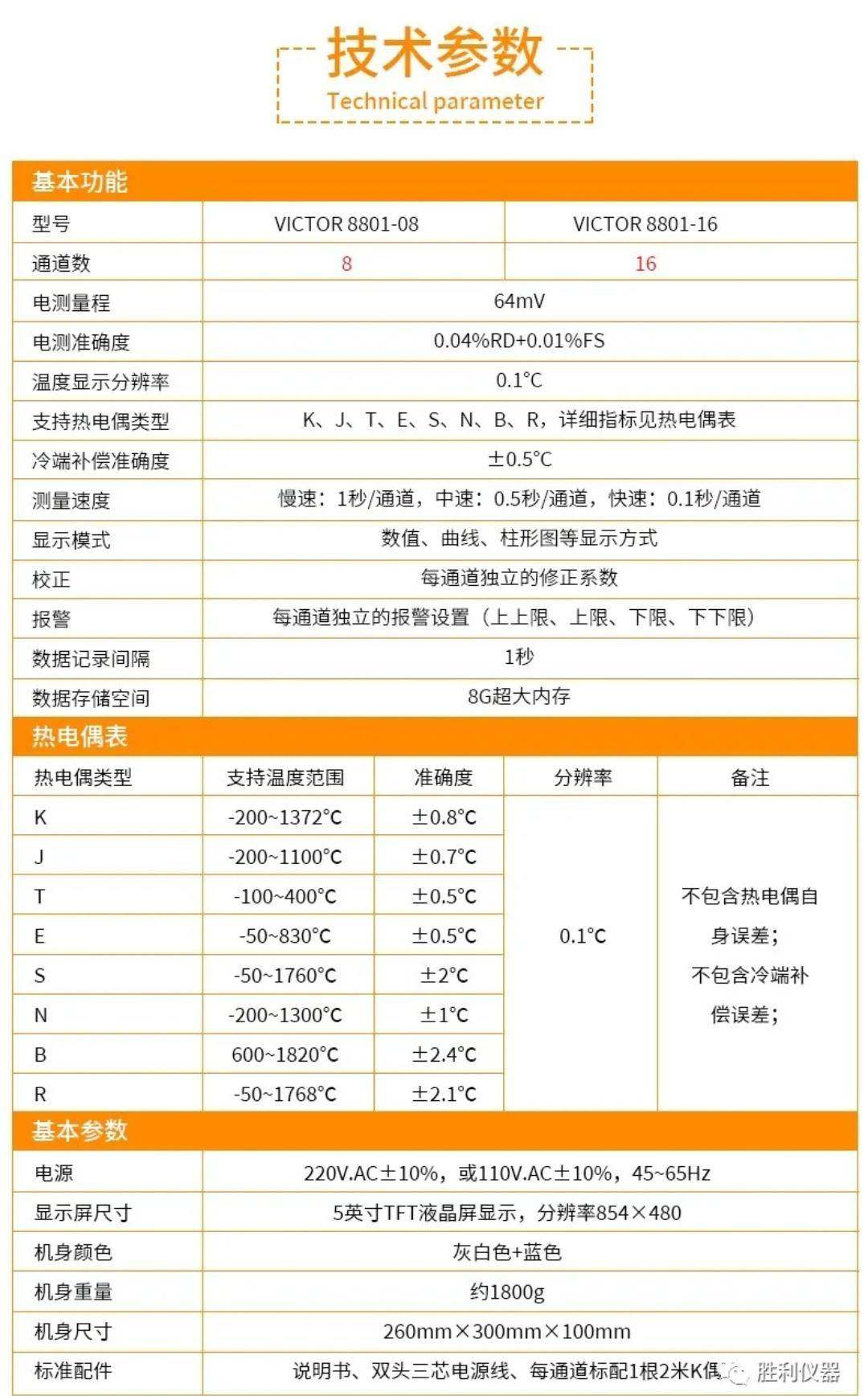 > 胜利仪器(VICTOR)多路温度测试仪VC8801-8/-16通道多点温升巡检仪