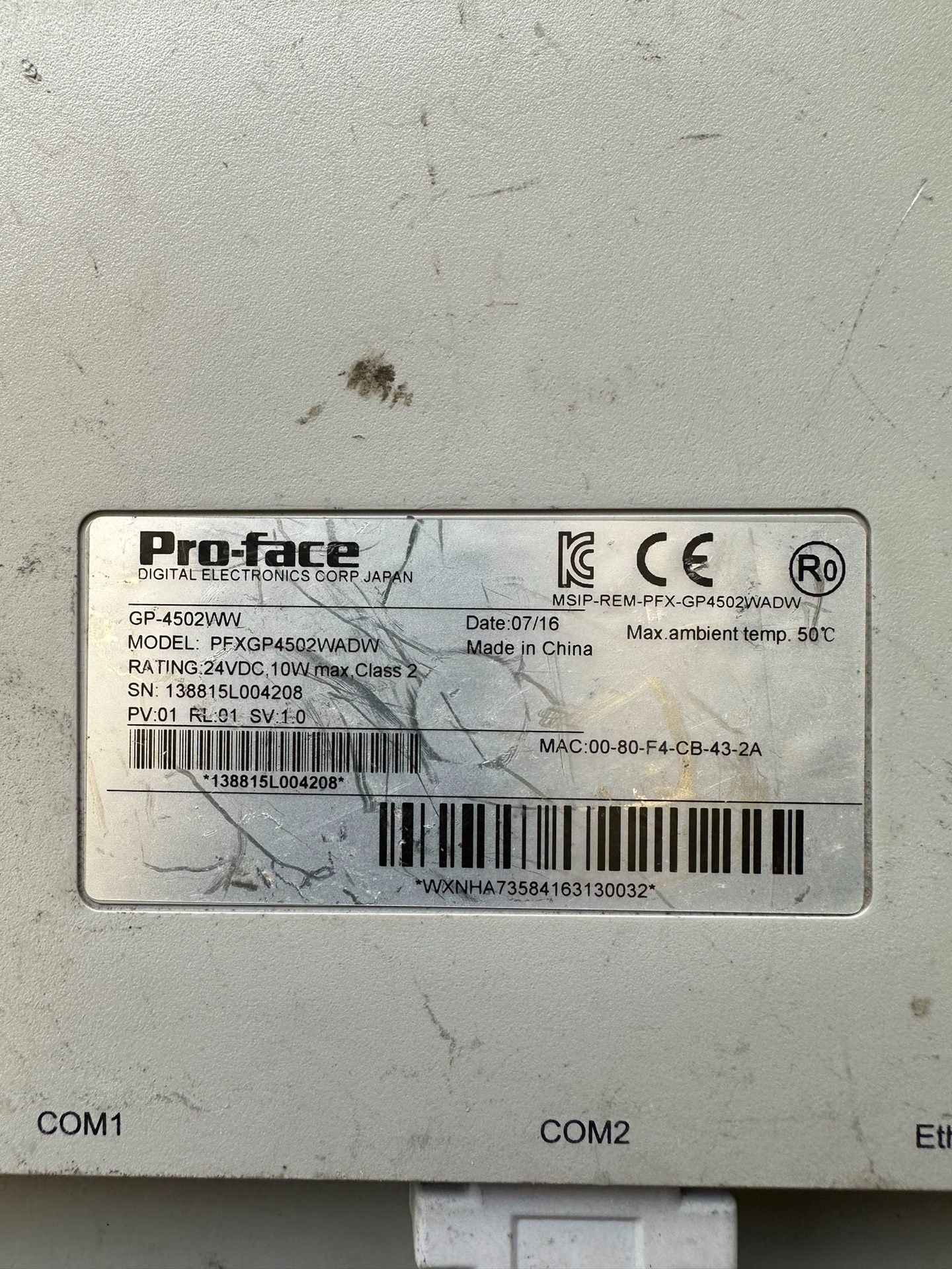 > 拆机普洛菲斯触摸屏一台,型号:GP4502WW,16年生产!