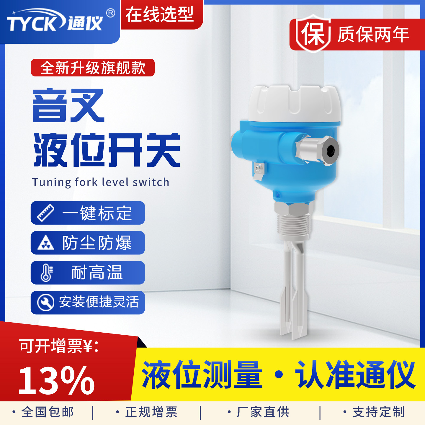 通仪音叉液位开关液位计物位计粉尘物料料位计水位测量4-20mA
