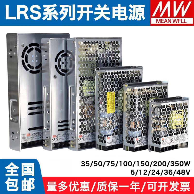 > 明伟LRS开关电源50/100w/350w监控LED监控变压器220V转24V直流12V
