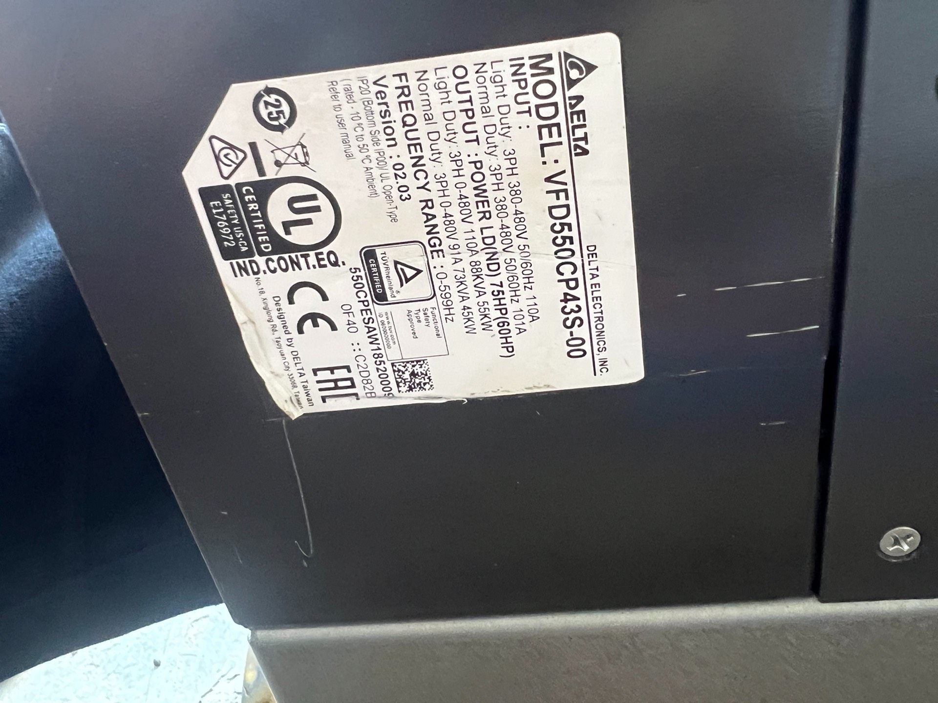 > 台达CP2000变频器55KW,VFD550CP43S-00