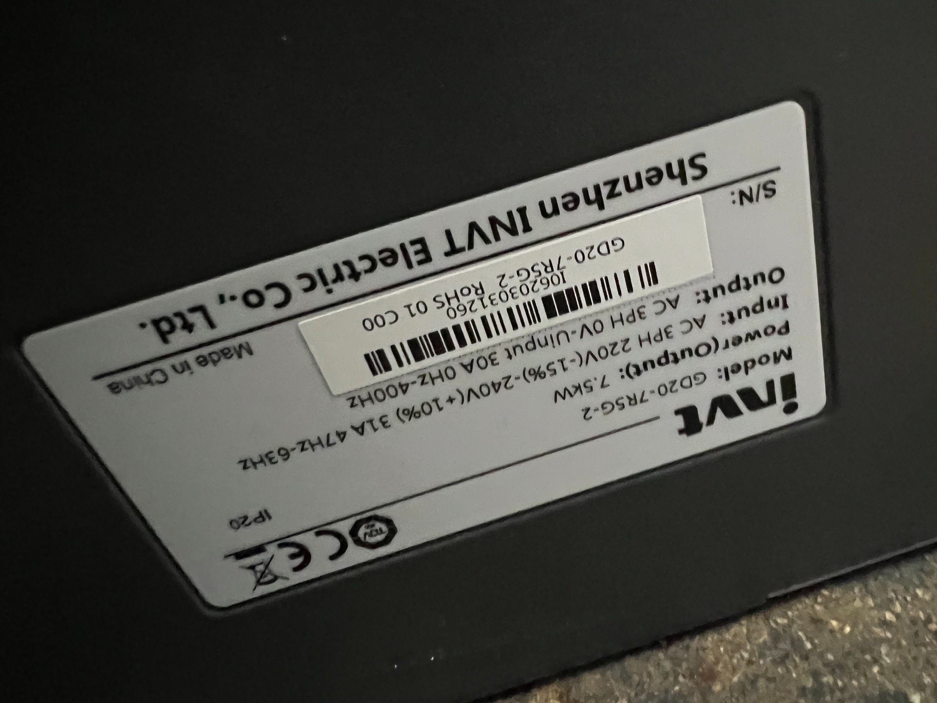 > 英威腾GD20变频器7.5KW,220V实物拍摄,成色漂亮,