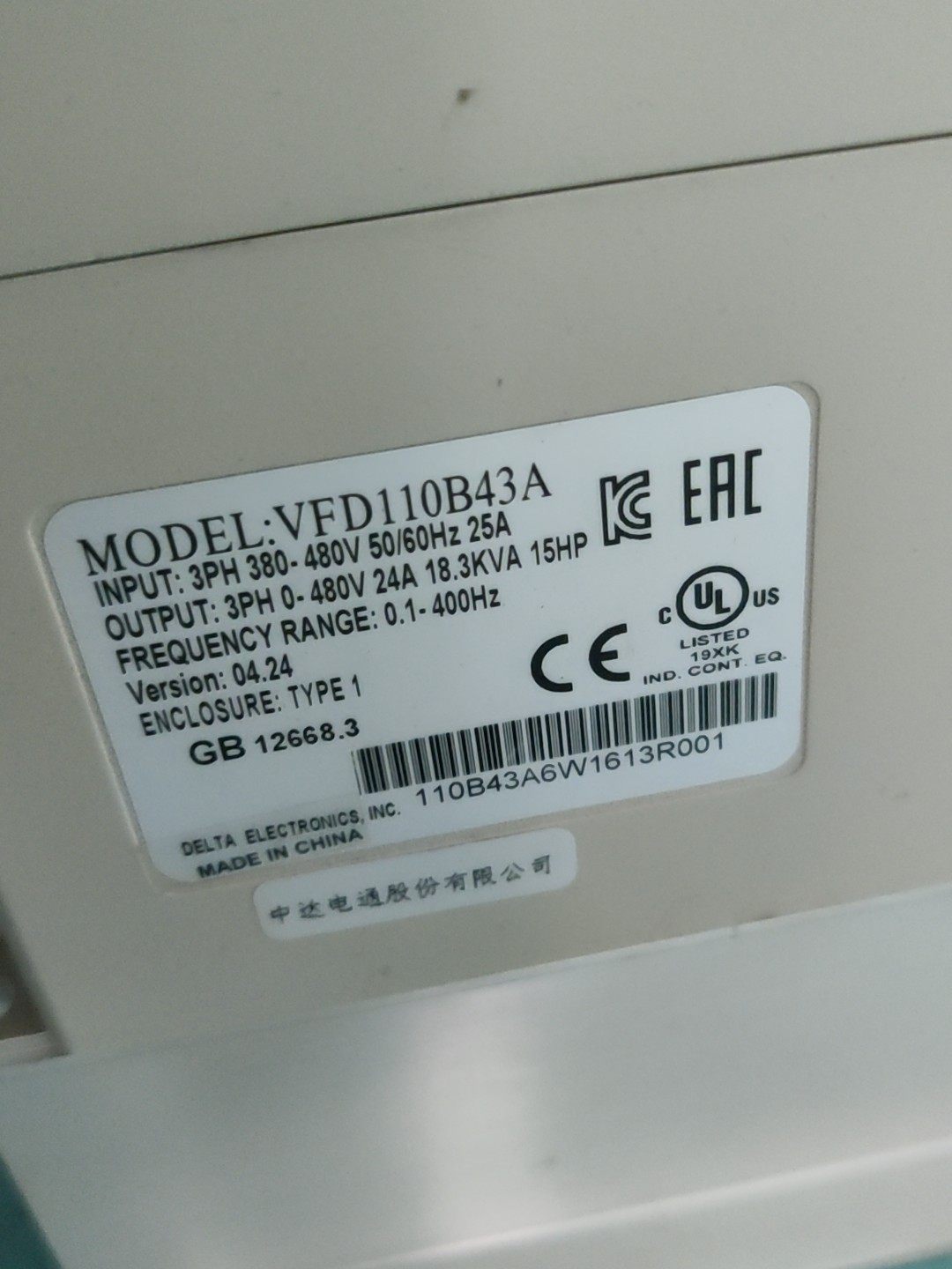 > 台达重载变频器VFD110B43A 11kw/380V