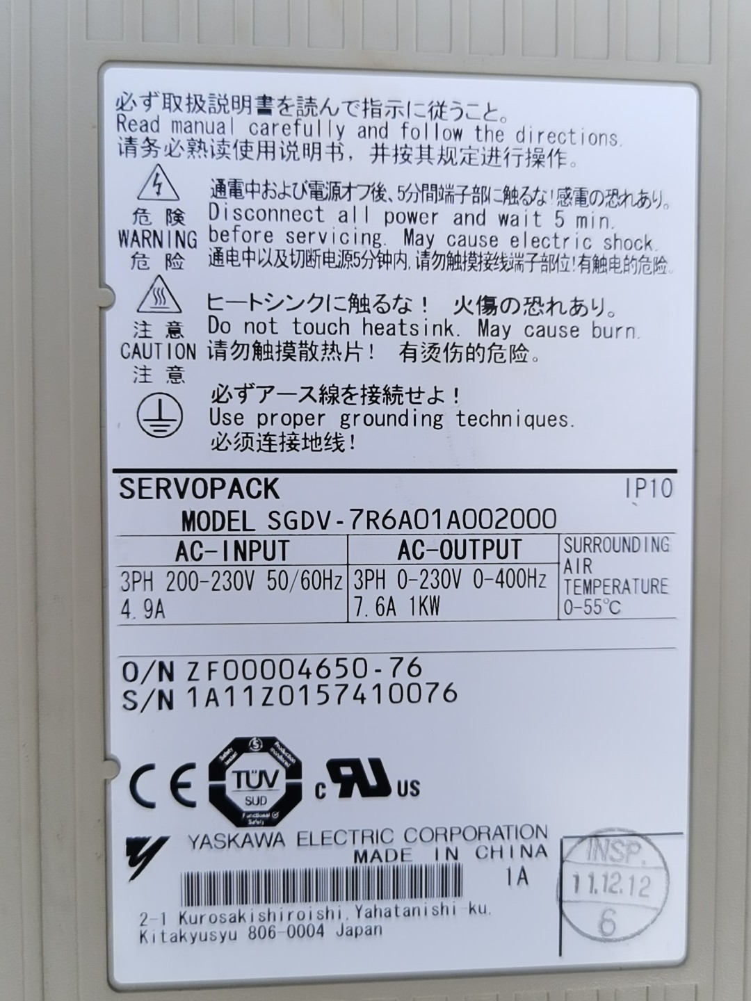 安川伺服驱动器,sGDv_7R6A01A002000,二手拆