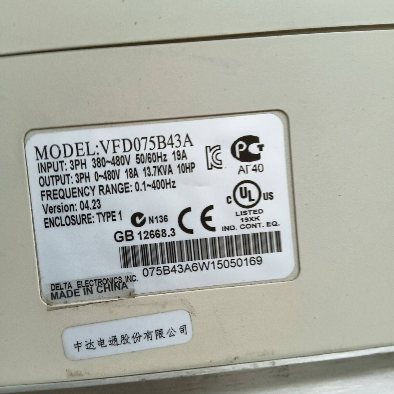 > 台达VFD-B系列变频器7.5kw 三相380V