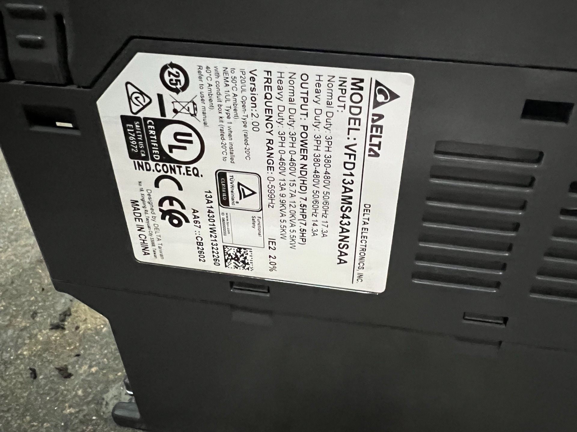 > 台达MS300变频器5.5KW,VFD13AMS43NSAA