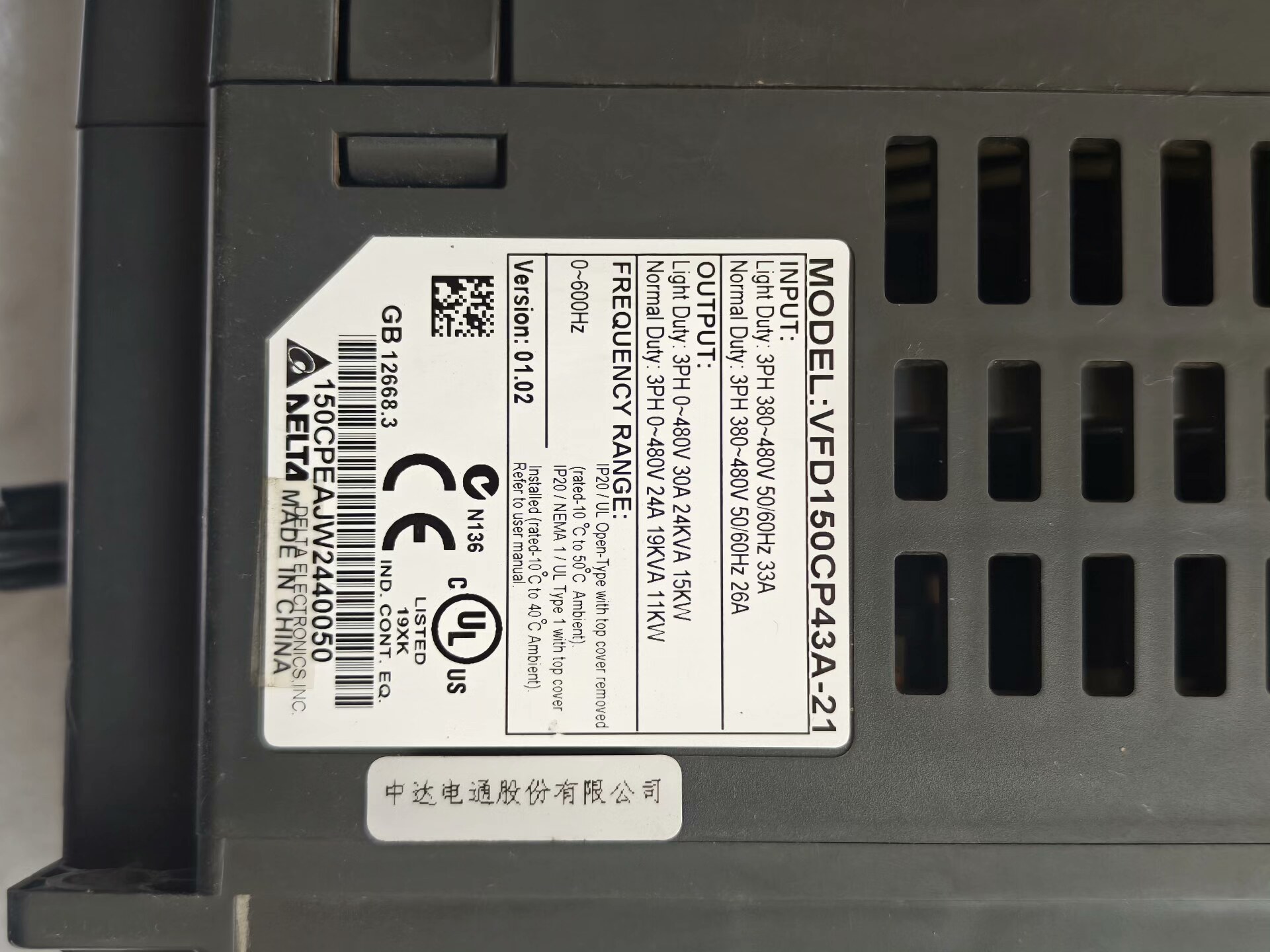 > 台达VFD150CP43A-21