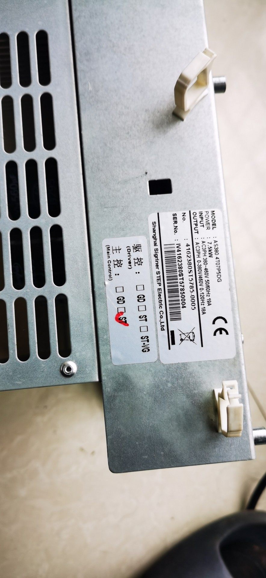 新时达变频器,型号是AS380 4T07P5DG,功率7.5