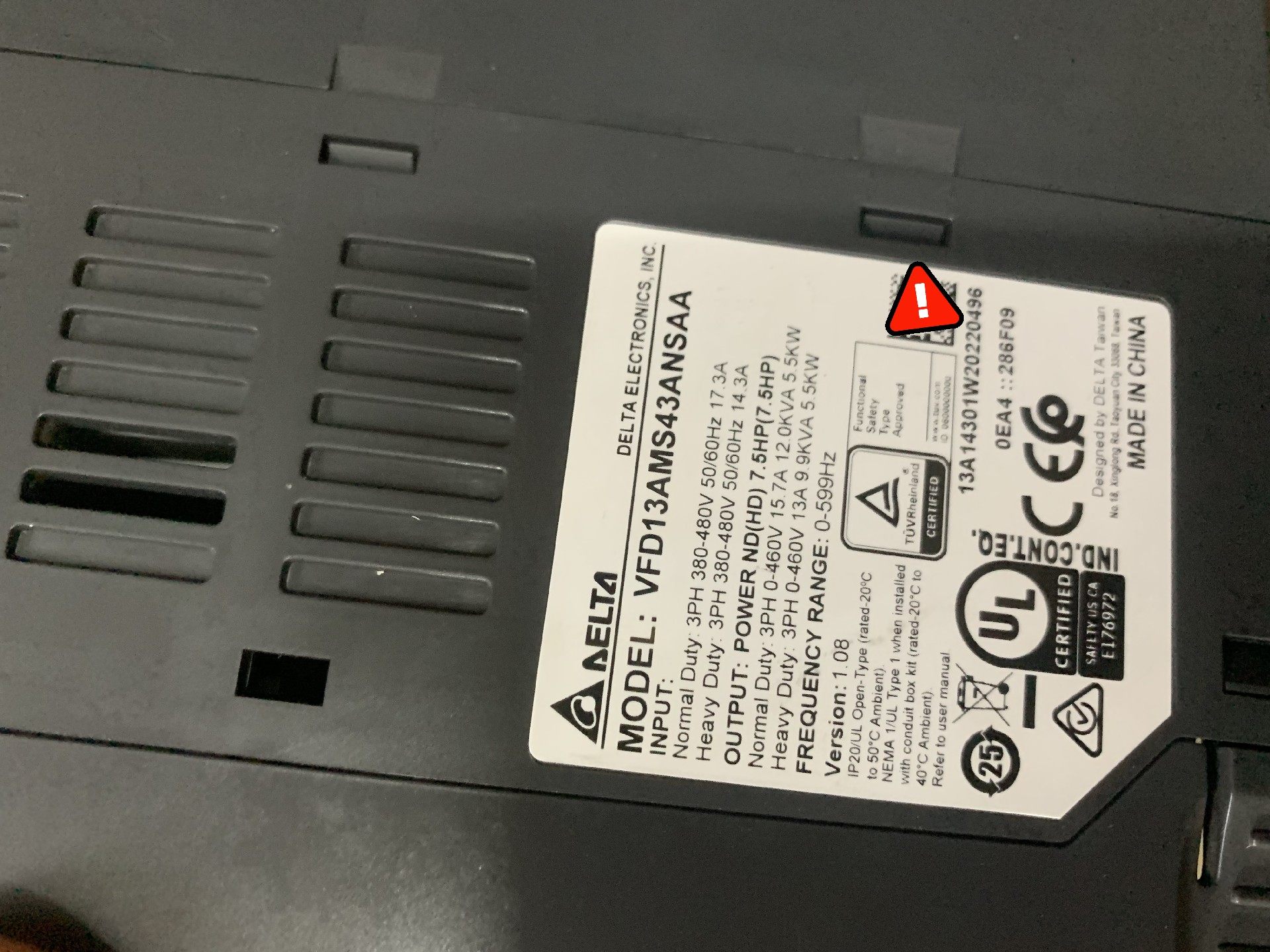 > 台达MS300变频器5.5KW,VFD13AMS43ANSA