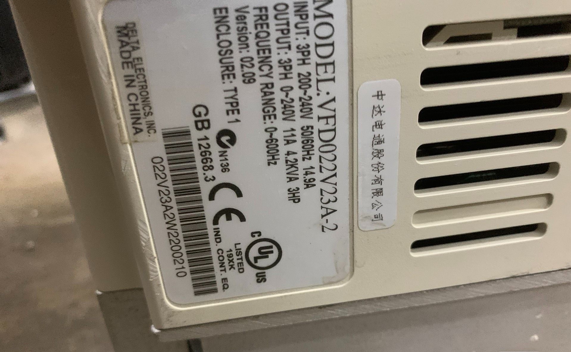 > 台达VFD-VE变频器2.2KW,220V,实物拍摄,成色漂