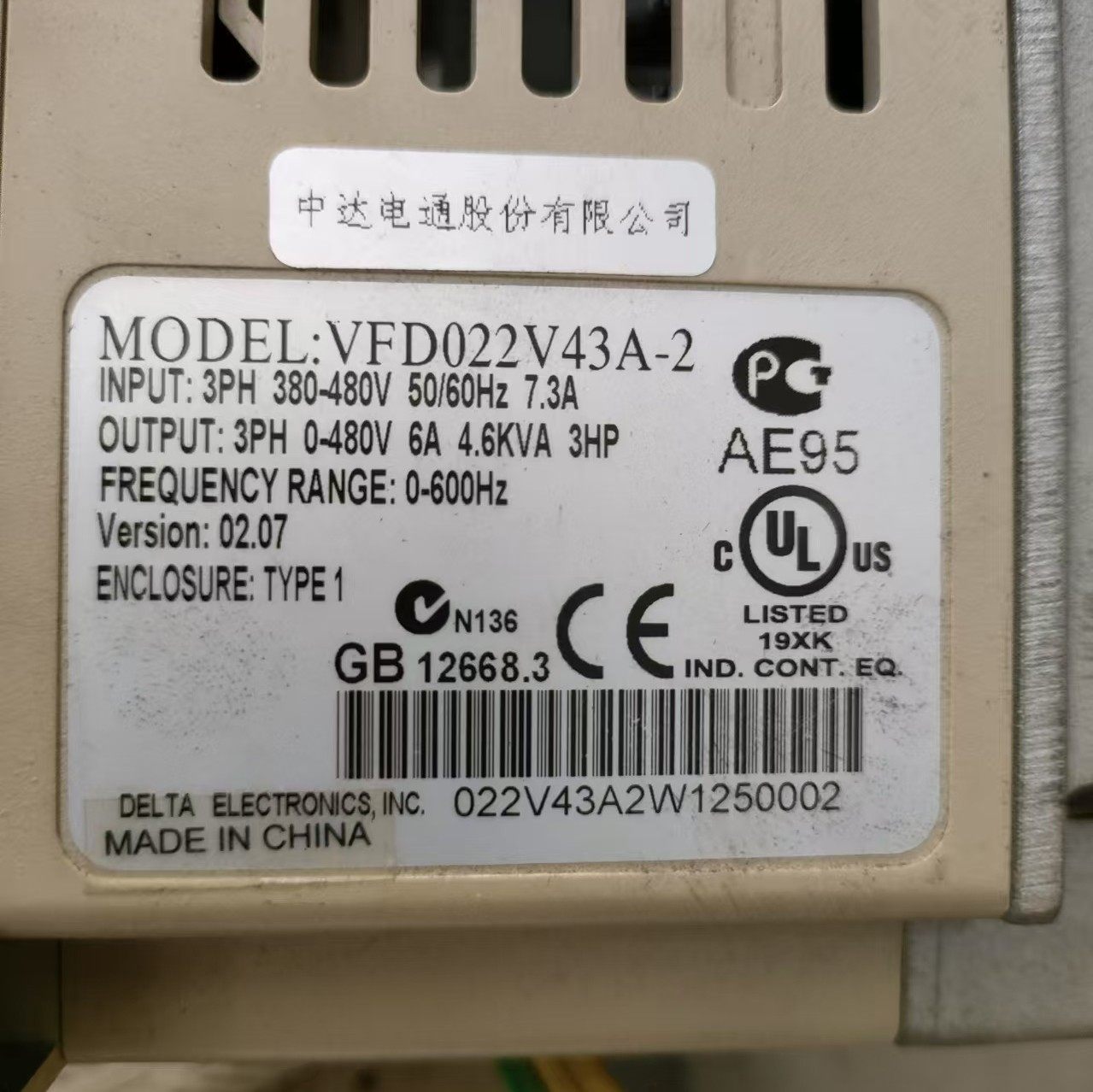 > 台达变频器VFD022V43A-2