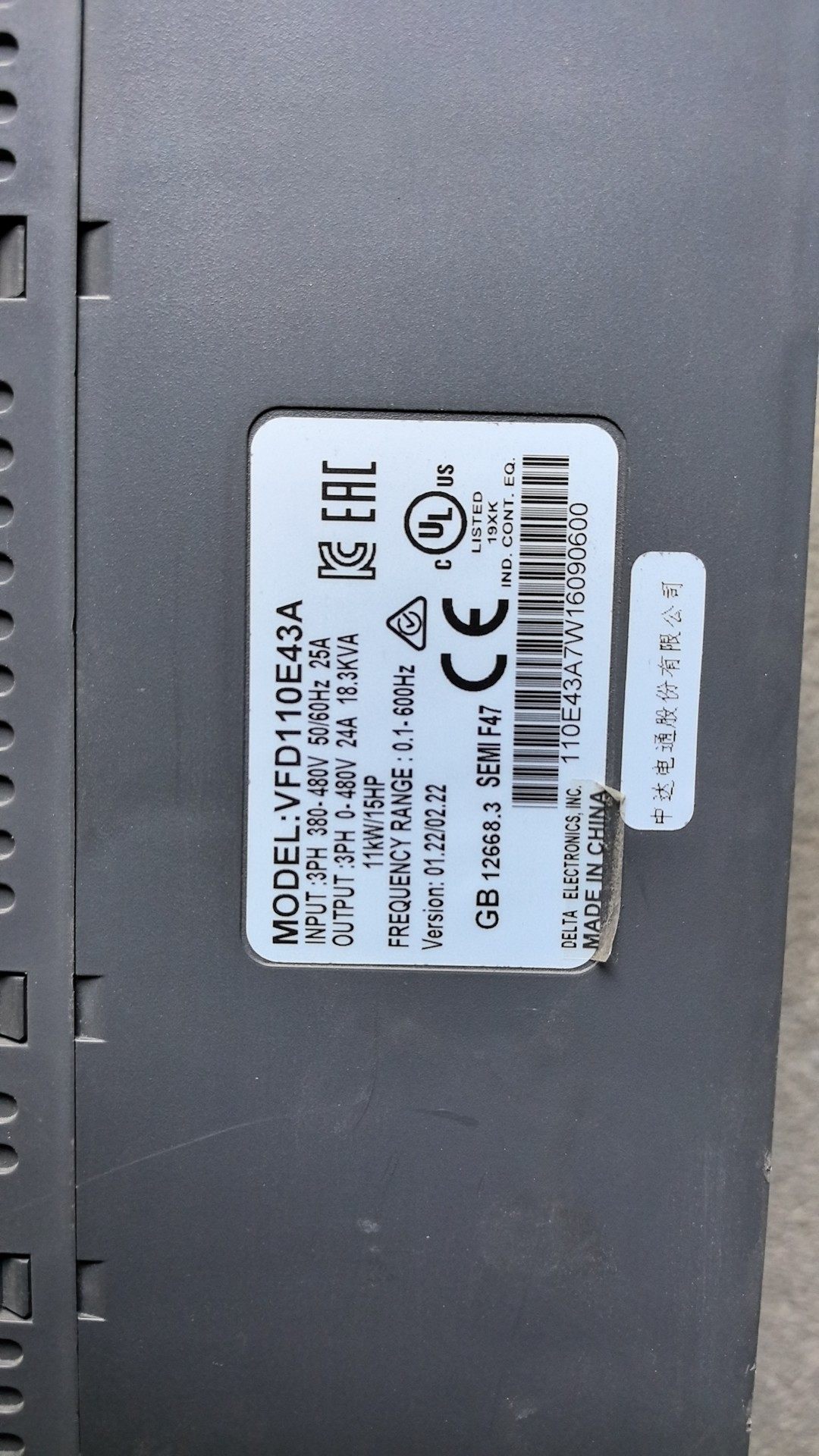 > 台达变频器 VFD110E43A ,11Kw/15HP,38