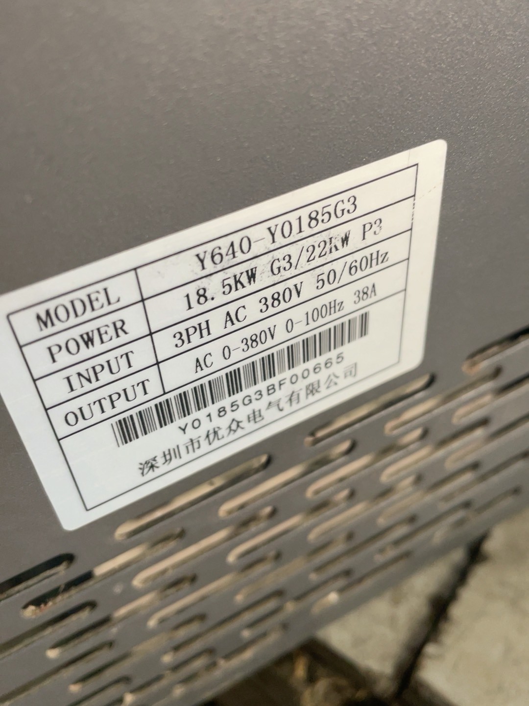 > 深圳优众变频器18.5kw/22kw优众Y640-Y0185