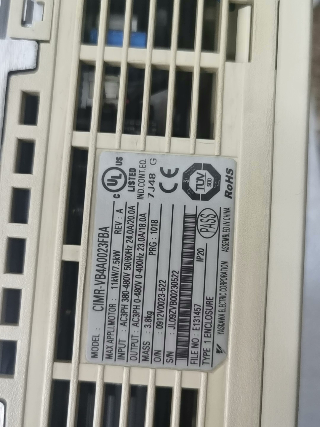 > 安川变频器CIMR-VB4A0023FBA,11KW/7.5