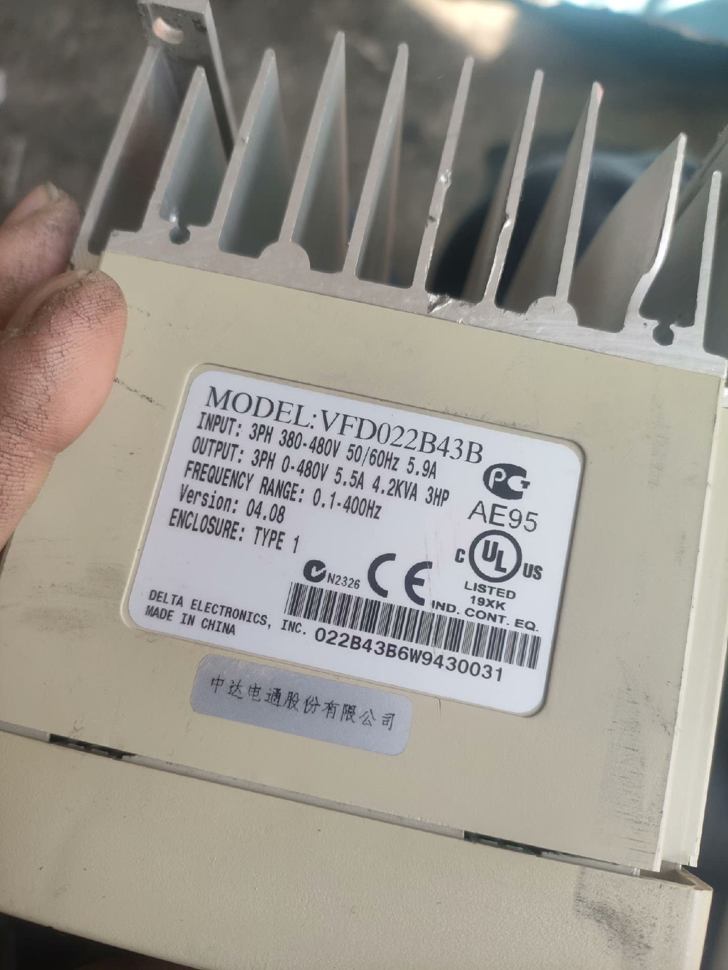 > 台达变频器 型号VFD022B43B 2.2KW