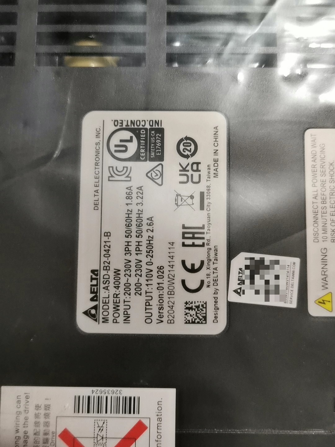 台达伺服驱动器ASD-B2-0421-B,400W功率,输入