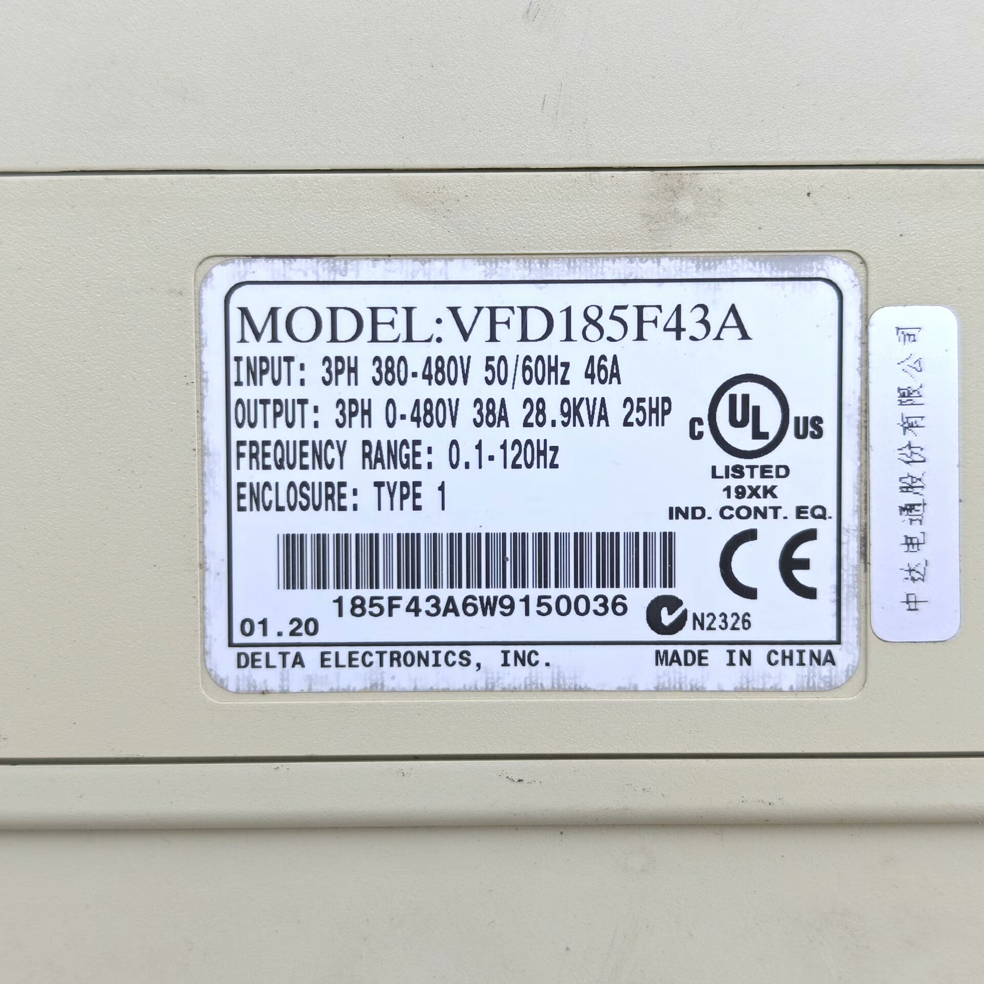 台达变频器VFD185F43A