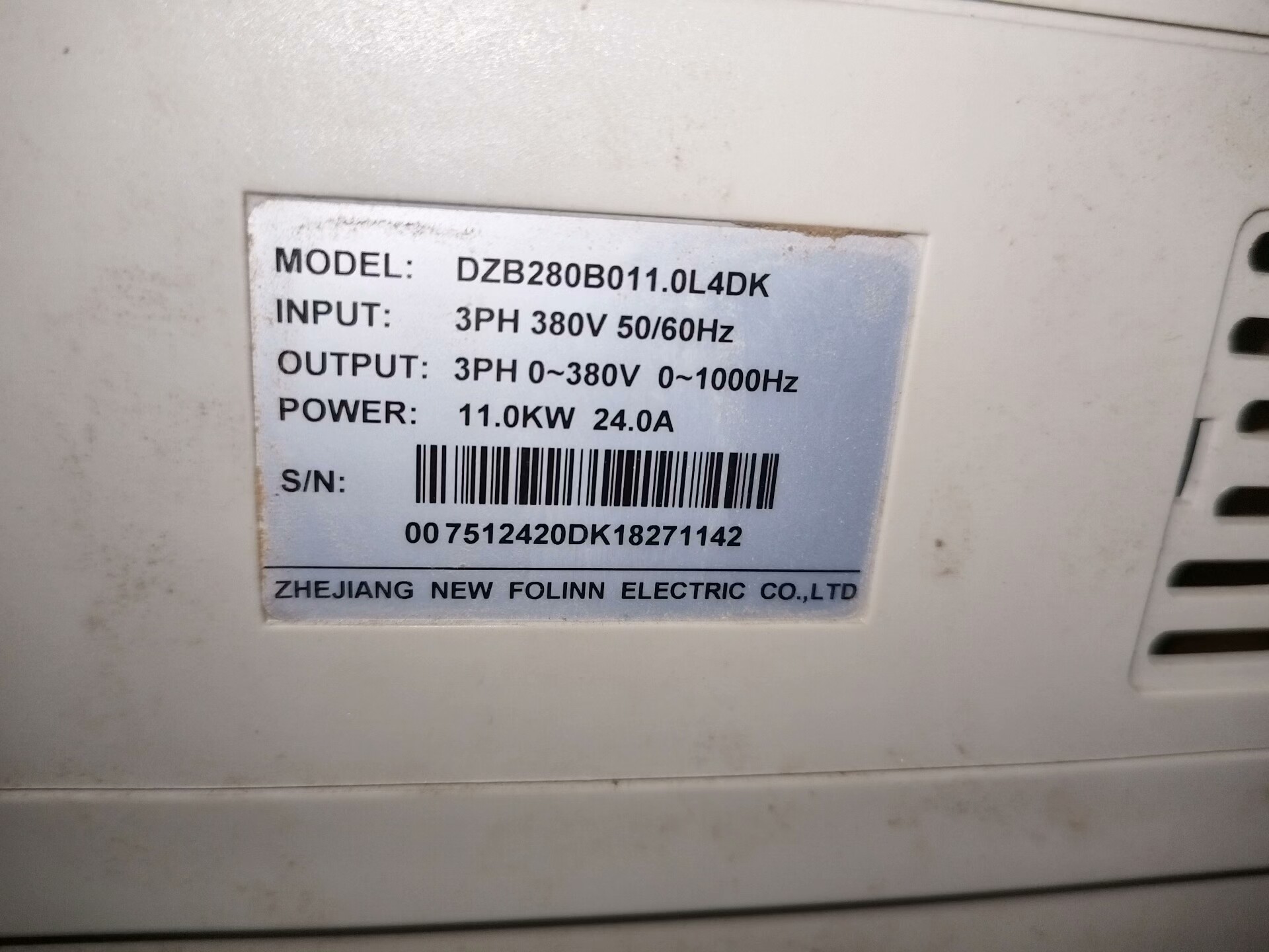 > 原装拆机富凌变频器DZB280B011.0L4DK功率11k