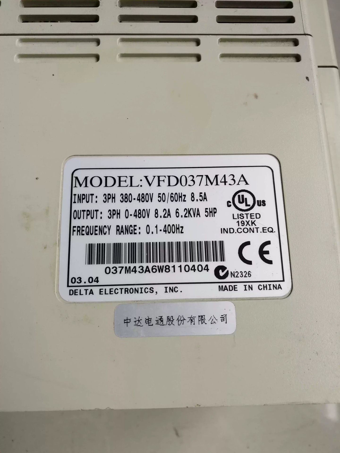 二手台达变频器VFD037M43A,3.7KW,380V三相
