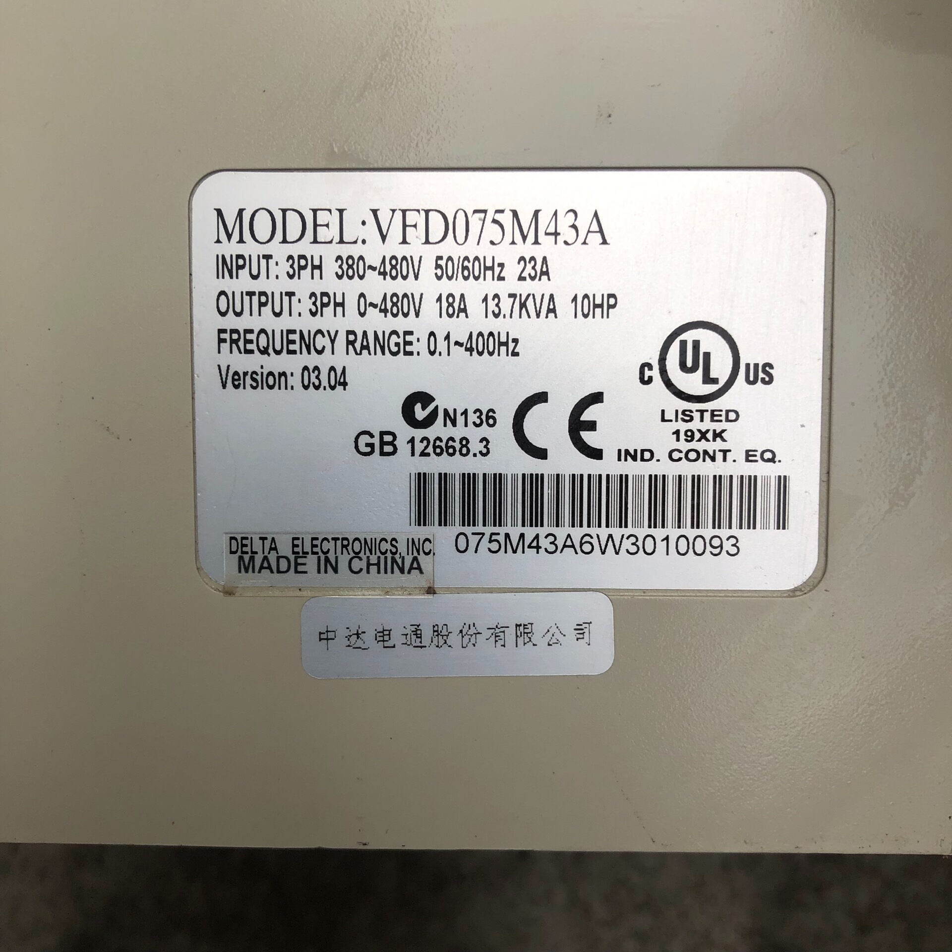 > 台达VFD-M系列变频器7.5kw 三相380V