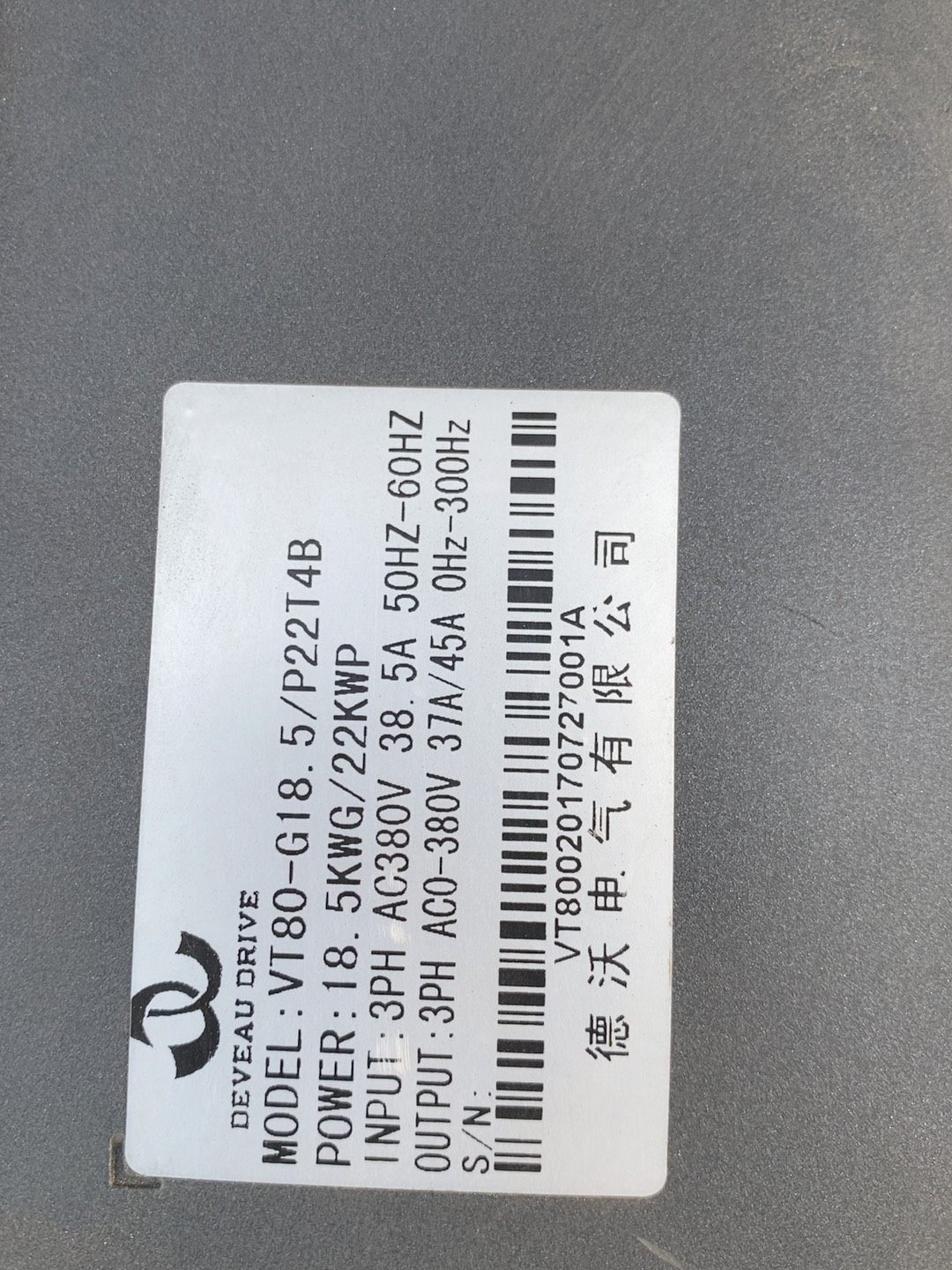 > VT80-G18.5/P22T4B 德沃变频器 18.5KW