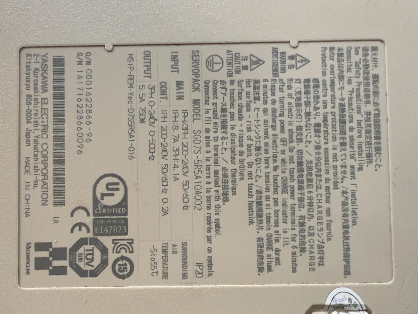 > 安川伺服驱动器SGD7S-5R5A10A002,750W,原