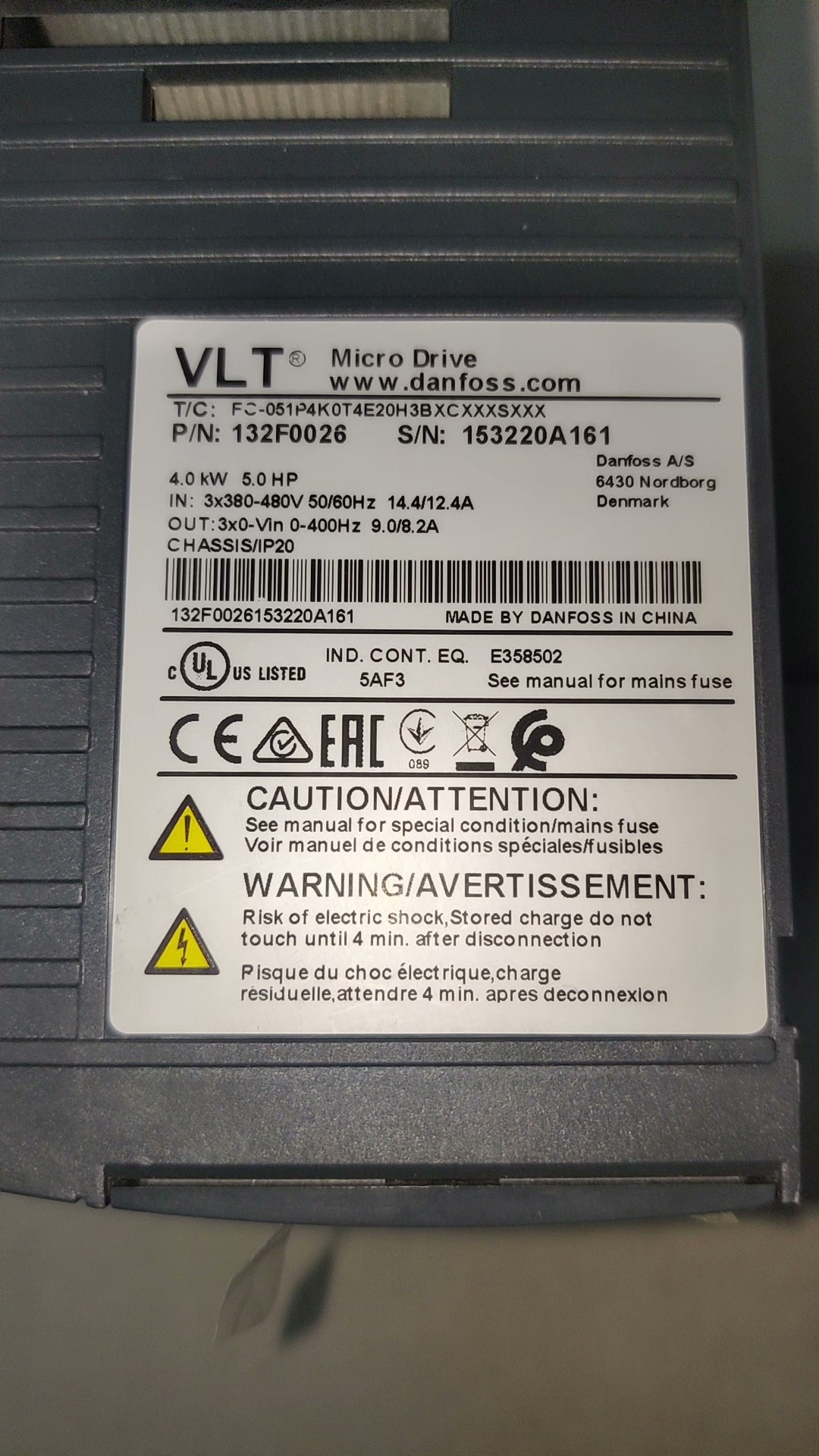 丹佛斯051系列变频器FC-051P4K0T4E20H3BX