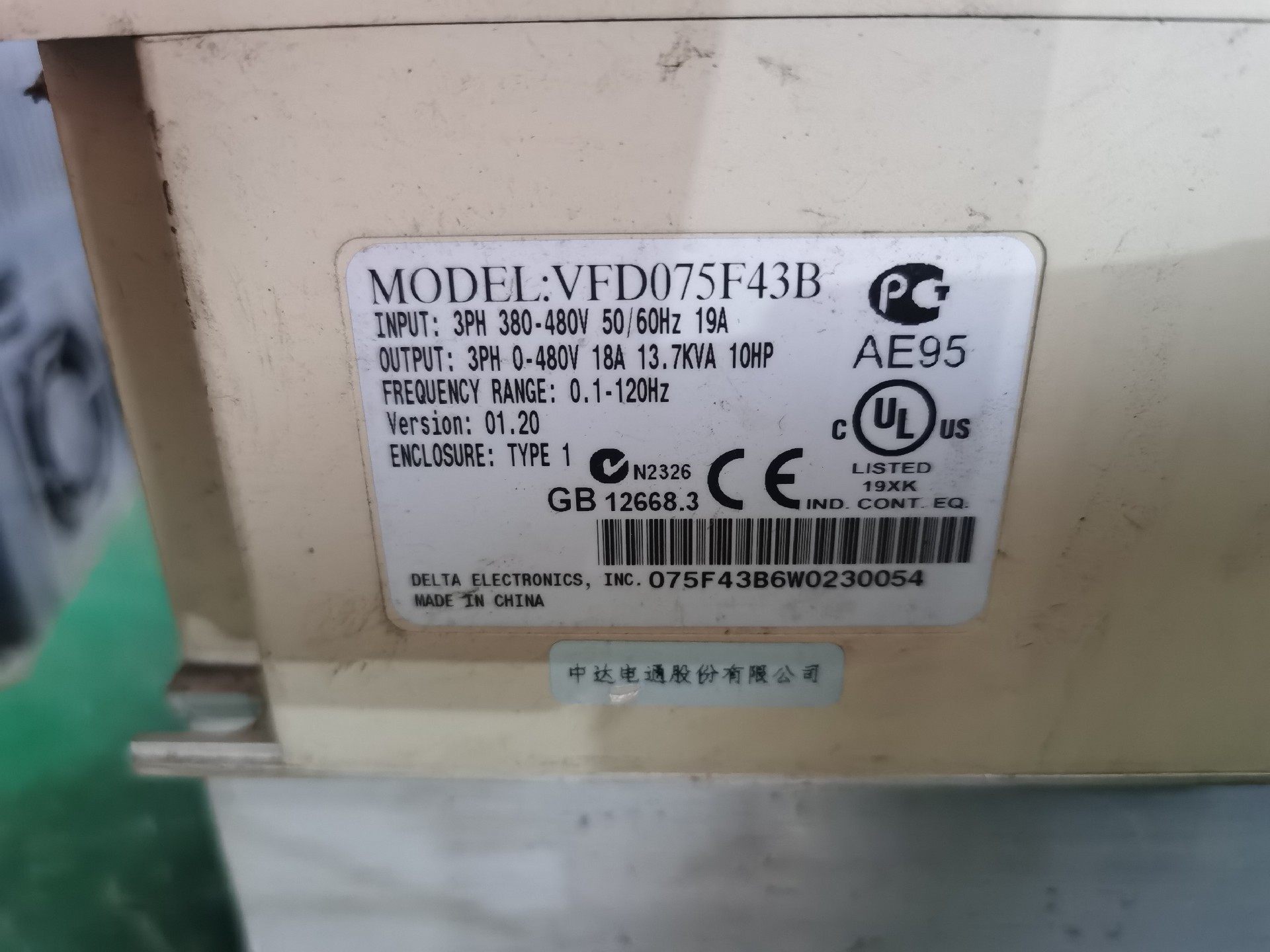 > 台达VFD-B系列变频器 VFD055B43A 三相380