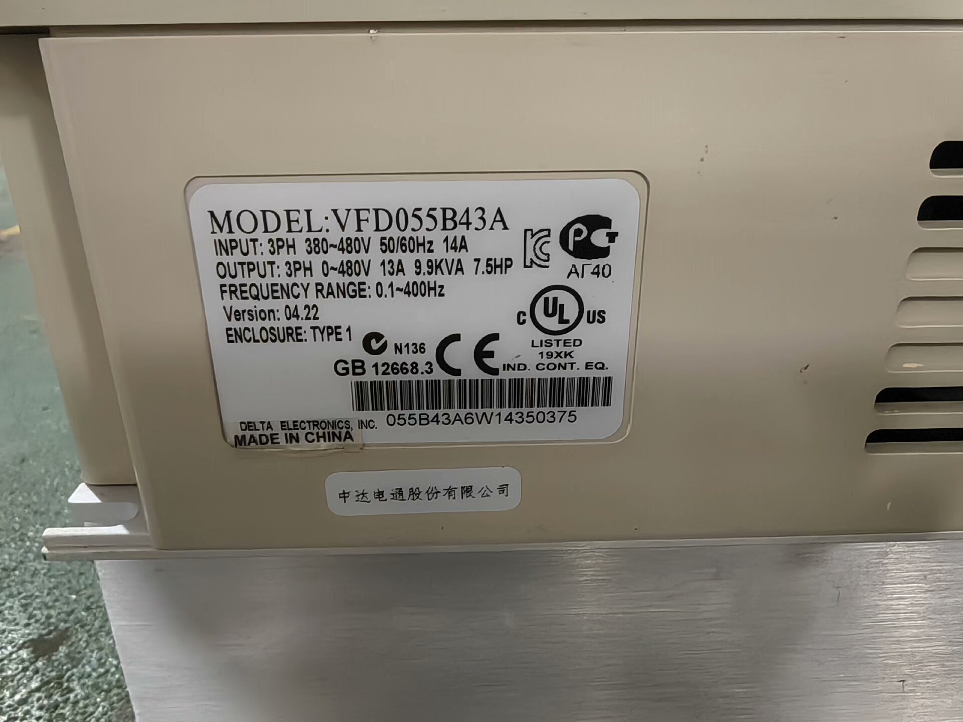 > 台达变频器B系列:VFD055B43A