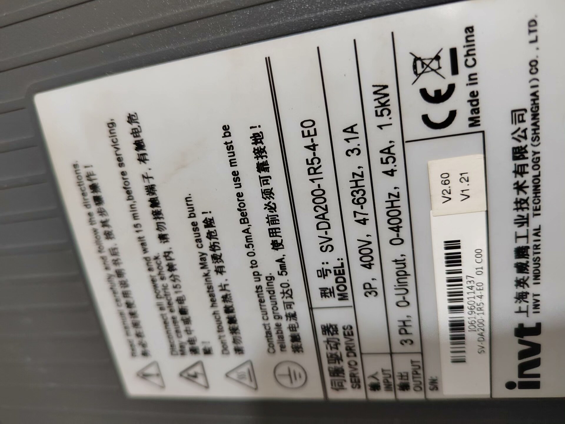 > 英威腾驱动器1.5KW型号SV-DA200-1R5-4-E0