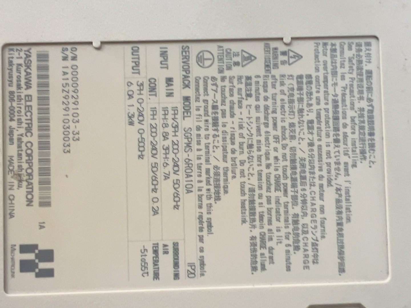 安川伺服驱动器SGPMS-6R0A10A,1.3KW,原装正