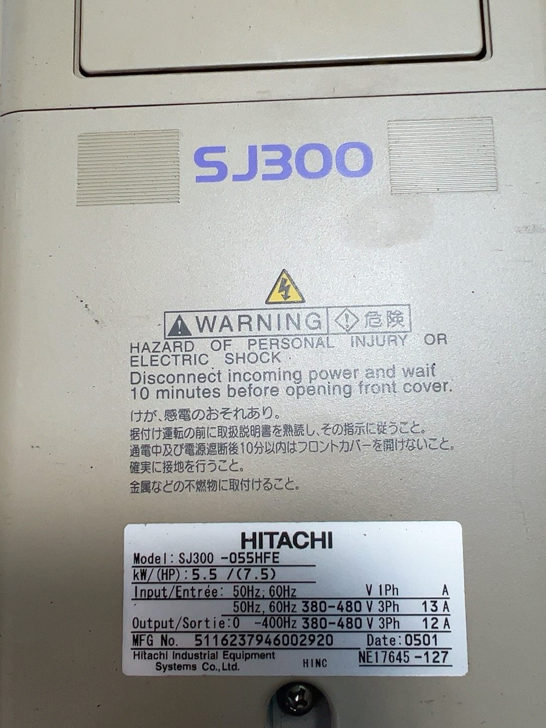 日立变频器SJ300-055HFE,5.5/(7.5)KW,