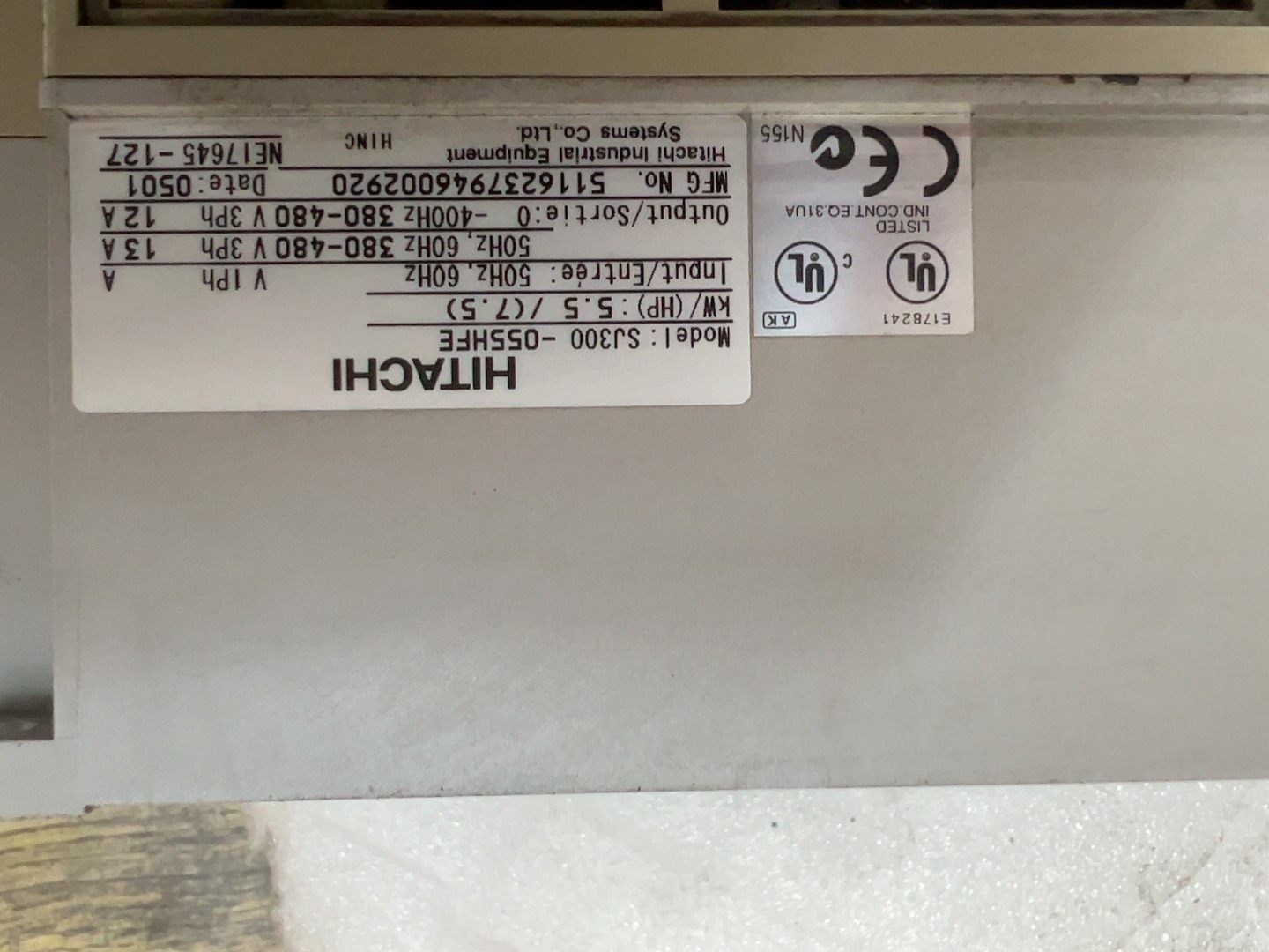 > 日立变频器SJ300-055HFE,5.5/(7.5)KW,