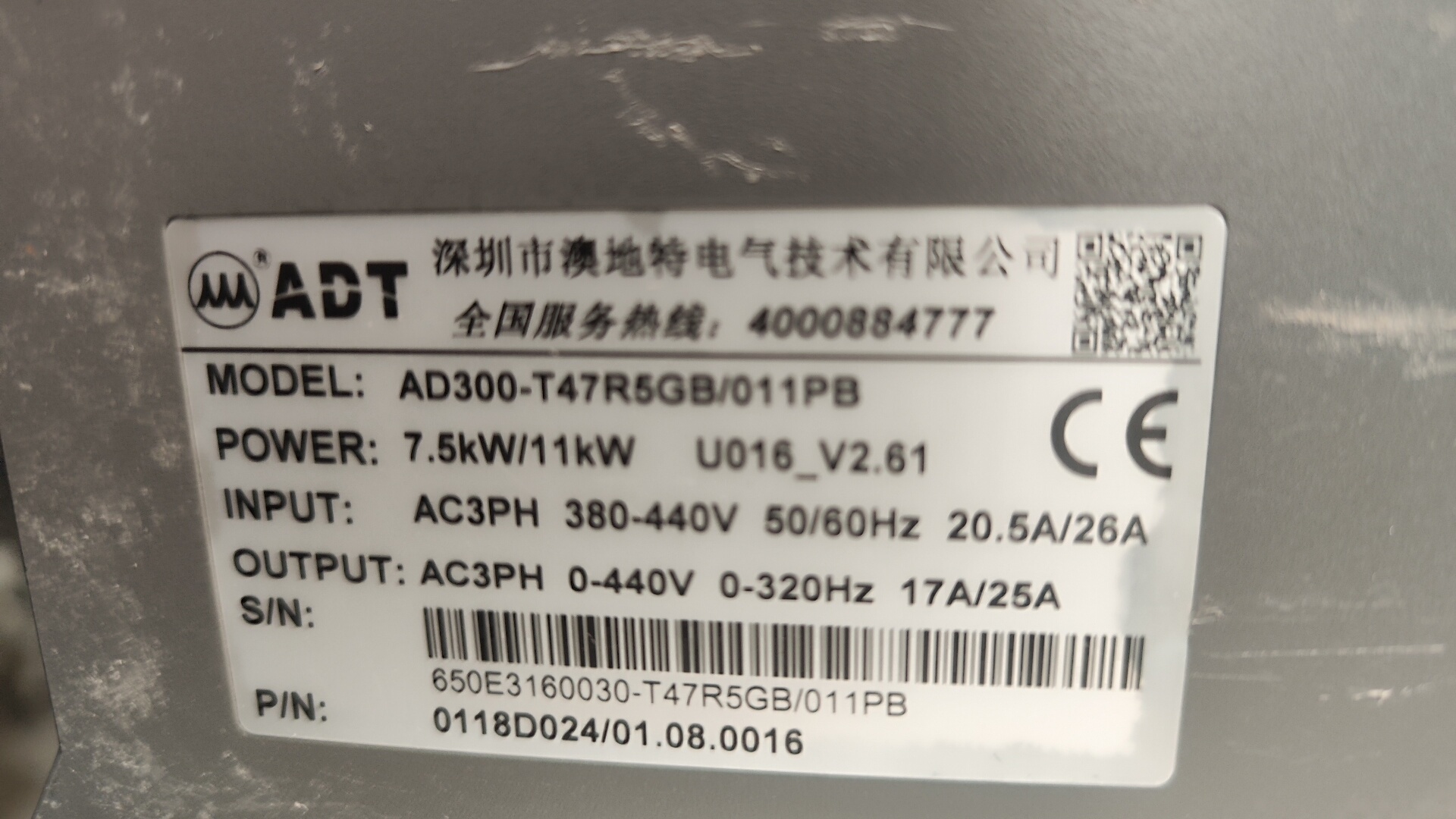 拆机澳地特AD300-T47R5GB/11PB 变频器7.5